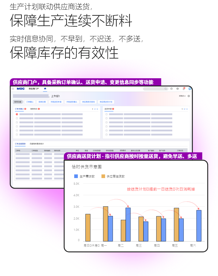 实时信息协同,不早到,不迟送,不多送,保障库存的有效性